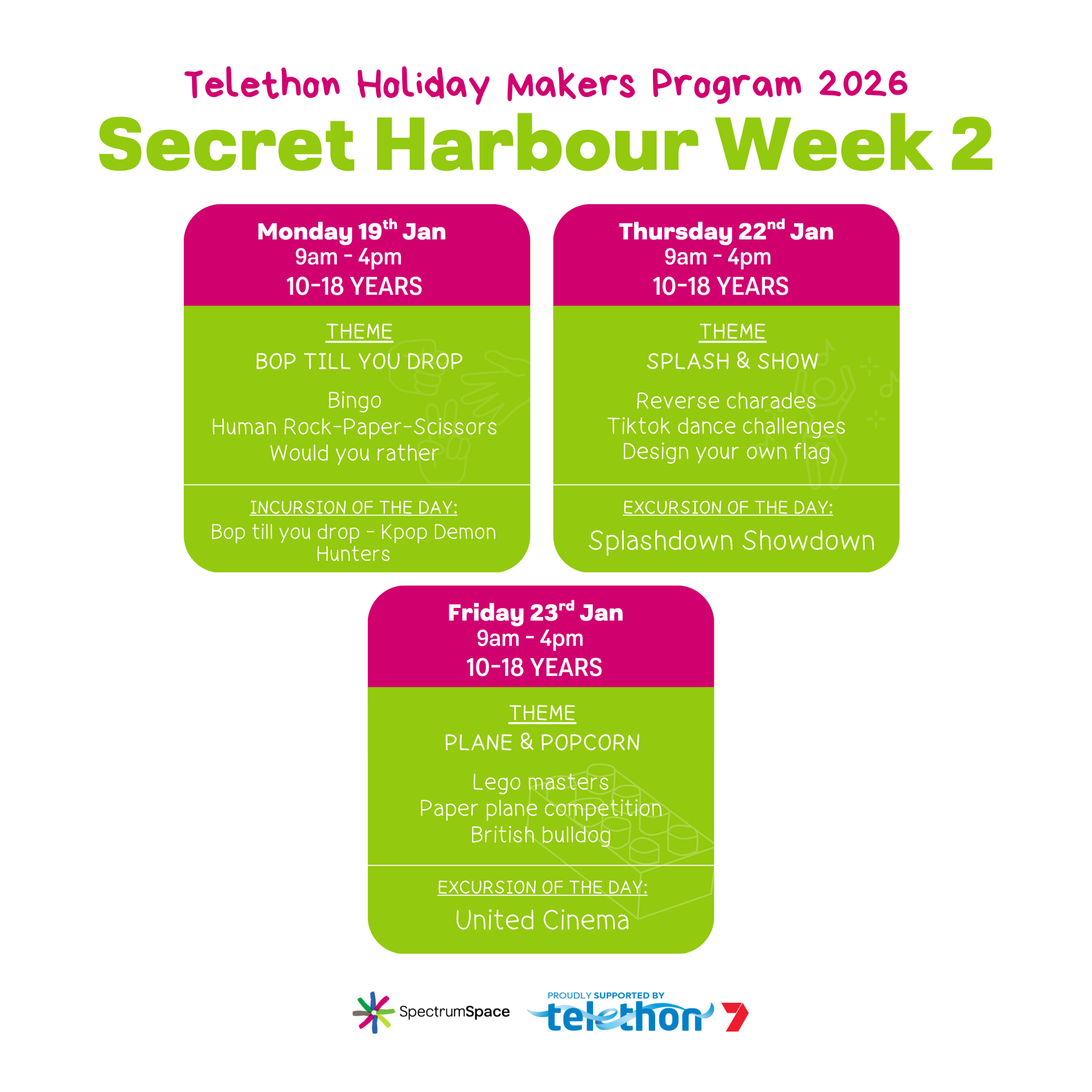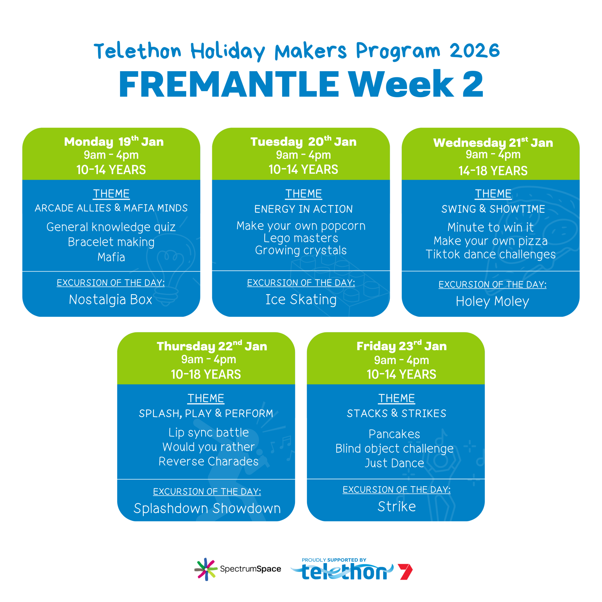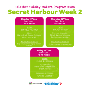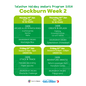 Our holiday program fee is subsidised thanks to the generous support of Telethon, making participation more accessible for families. Please note: